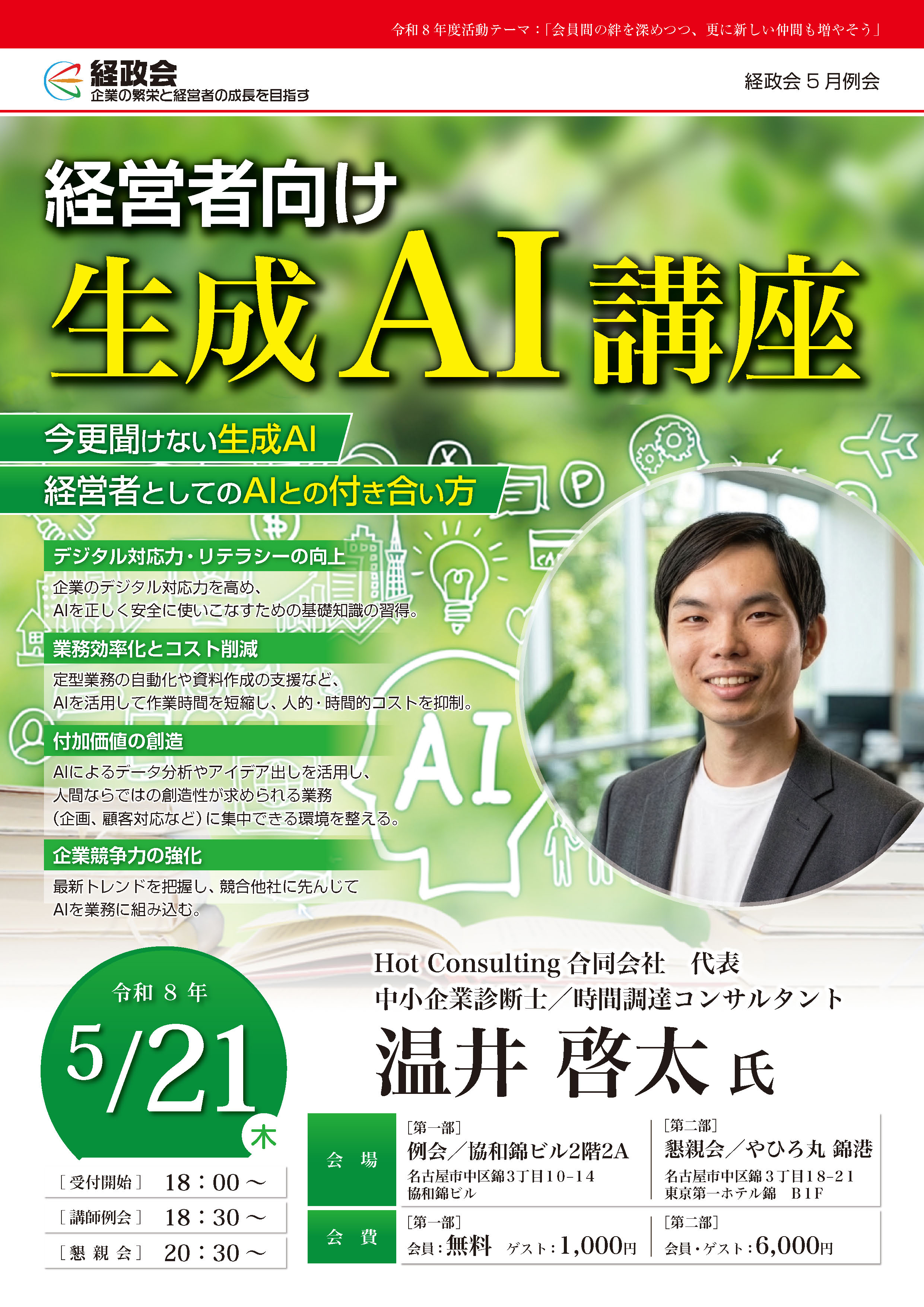 しかし、「経政会」のコンセプトは、東海地区の経営者が集まり、勉強を通して大企業にも負けない集団を目指して日々研鑽を積んでいます。